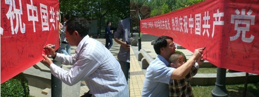硕901党支部以建党90周年为契机,深入开展建党90周年庆祝活动,以条幅签名留言的形式,拉开了全校范围内的中国共产党成立90周年活动的序幕。