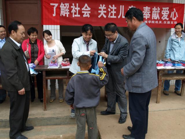 分党委开展“创先争优”活动的号召,组织党员深入农村小学,进行了“了解社会、关注儿童、奉献爱心”的主题活动。两个支部来到蓝田县三里镇李后村小学,为15位特困生送去了书包、文具等学习用品,鼓励学生们好好学习,报效祖国,并且和李后村村支书及小学校长、老师进行座谈、交流,了解村办小学的现状和存在问题。