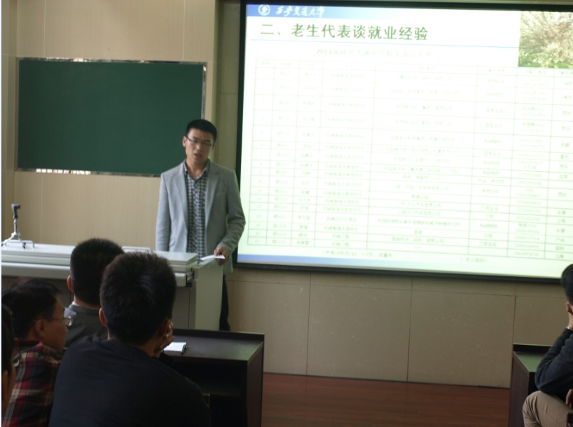 在交流会上,来自于不同学制、不同专业、不同性质就业单位的15位毕业研究生热情地分享了他/她们在求学、求职过程中的成长经历,给即将面临就业的师弟师妹们提供了宝贵经验和建议。本次邀请的毕业生签约单位分别是:腾讯科技(深圳)有限公司、中国电子科技集团公司第十四研究所、陕西鼓风机(集团)有限公司、中国电子科技集团公司第十研究所、中国建设银行股份有限公司重庆市分行、中国航空工业第六一八研究所、中国航天科工集团第二研究院二〇六所、壳牌中国、一汽-大众汽车有限公司、上海大众汽车有限公司、中国科幸运飞艇开奖