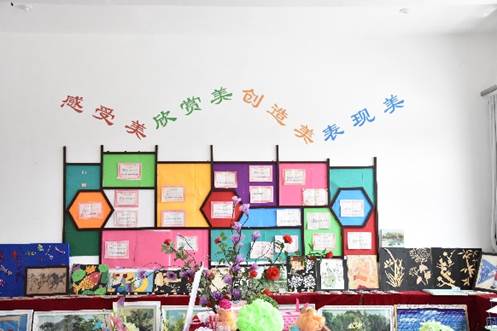 走进教学楼,目光所及,几乎都是这些孩子们的艺术作品。蛋壳可以用来作画,五谷杂粮可以用来作画,丝线可以用来作画,纸巾可以用来作画,麦秆可以用来作画,孩子们的创造力和艺术想象力令队员们钦佩不已。