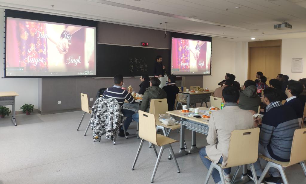 本次茶话会以“温暖冬日,情系机械”为主题,留学生教务员冯老师向大家介绍了中国春节的来历和习俗,图文并茂的视频短片掀起了留学生学习中国传统文化的欲望。活动中留学生争先恐后的介绍了自己的国家和习俗。来自巴基斯坦、弗得角、卢旺达、埃及等国家的留学生纷纷上台表演了自己国家的特色节目,使现场观众领略到了充满别样的情调和异国文化的魅力。其中来自弗得角的Antonio以一首中文歌曲《朋友》表达了对中国导师、朋友的热爱和留恋,情到深处,更是掀起了留学生们现场的欢呼。