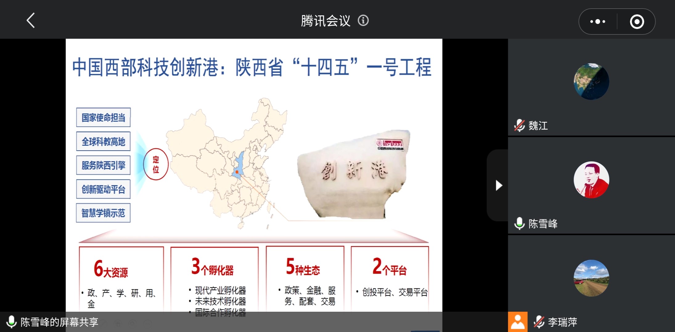 (孵化器),实现人才培养模式变革;营造“政策、金融、服务、配套、交易”5大生态,打造“创投、交易”2个支撑平台,探索产学研深度融合有效举措、创新路径,聚力将创新港打造成为陕西最大的孵化器和科技成果转化“特区”。陈院长表示:“要保持战略定力,创新港是学校发展重要战略与契机”。