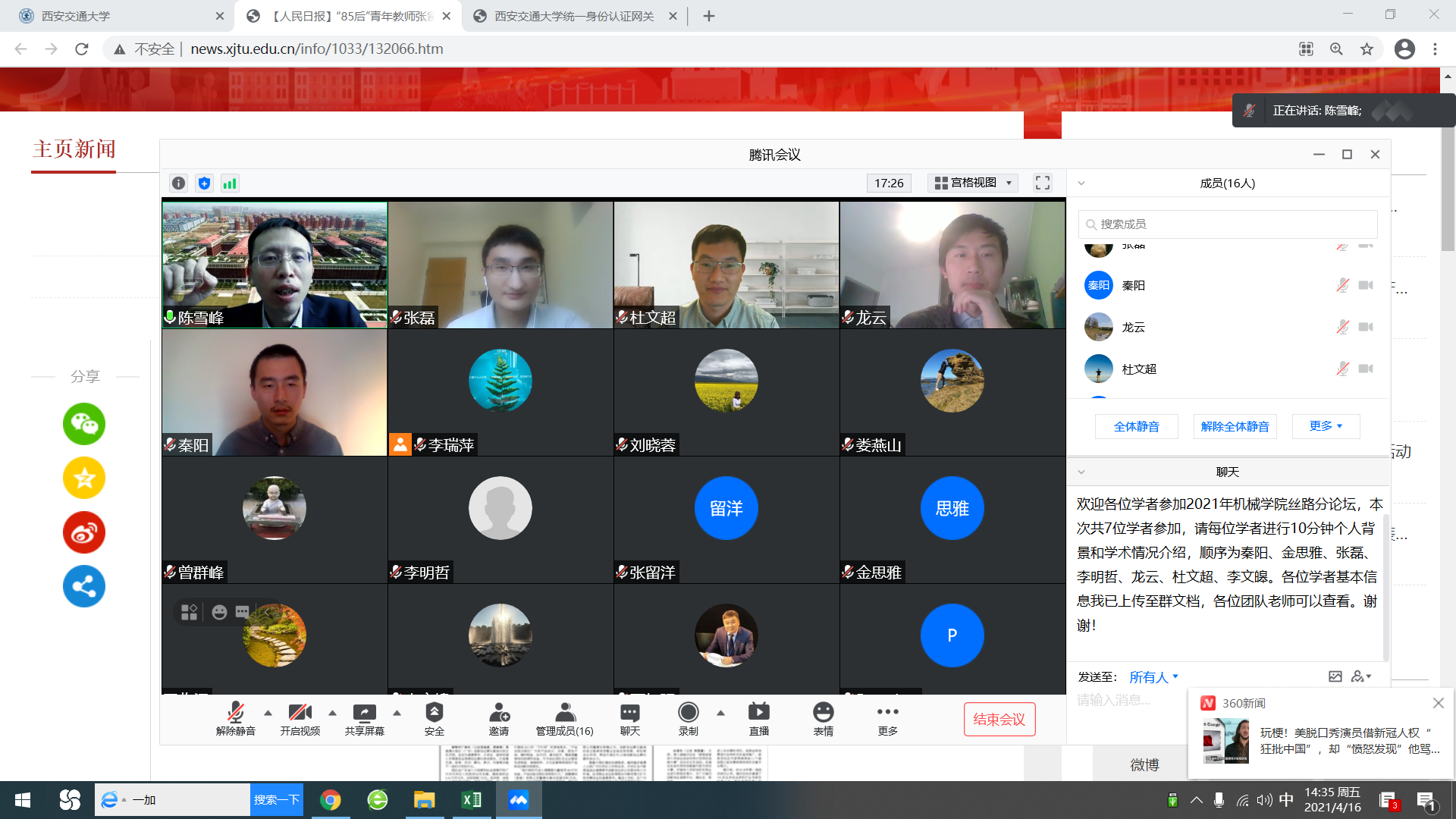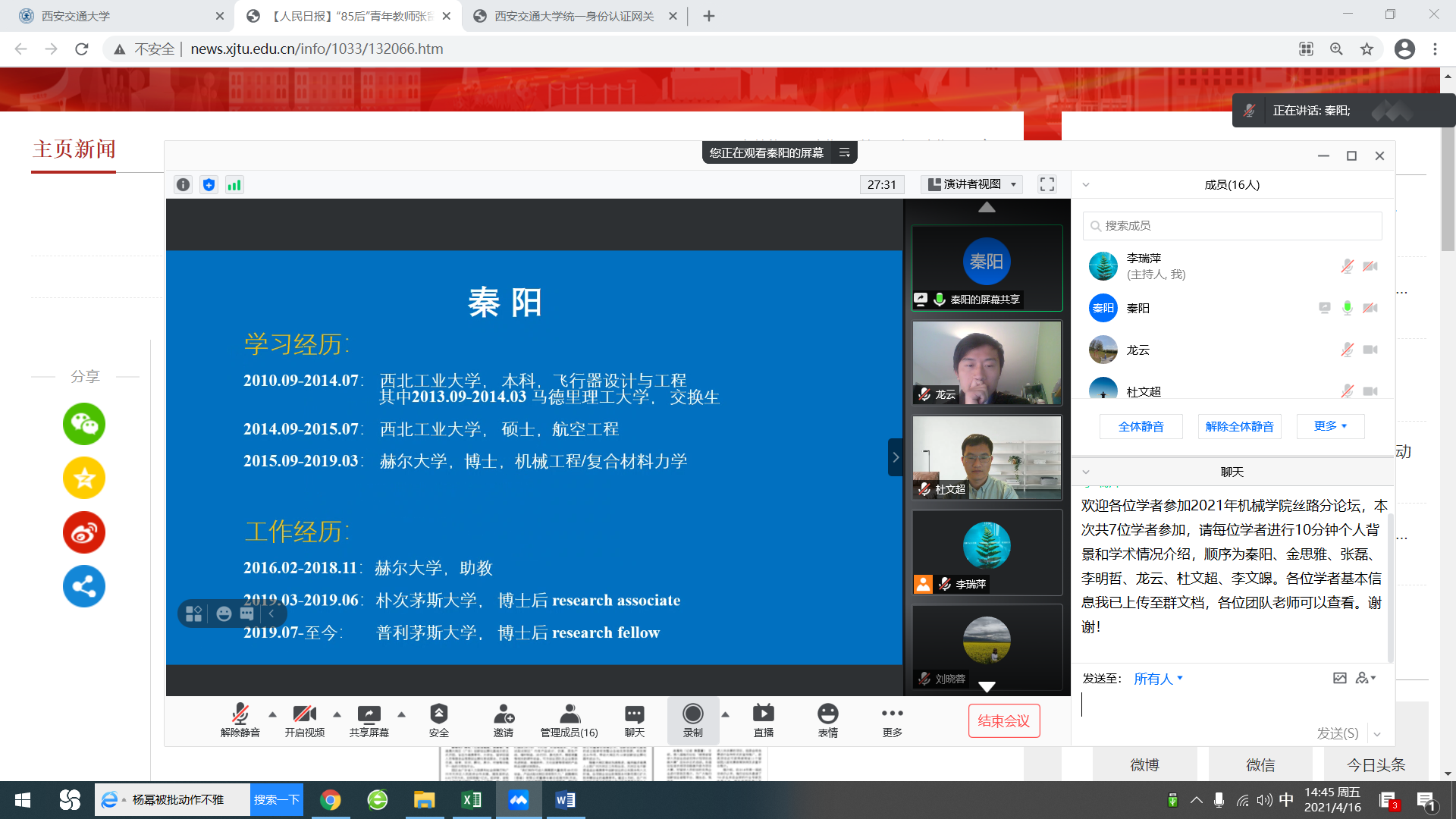 4月16日下午,第七届“丝绸之路青年学者研讨会”机械分论坛以线上方式召开。来自海内外不同国家的青年学者、幸运飞艇开奖